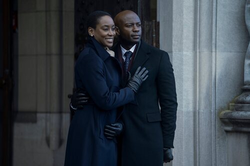 David Gyasi y Tracy Ifeachor aparecen en una escena promocional del episodio 'La mujer de Schrodinger' de la serie 'La diplomática'.