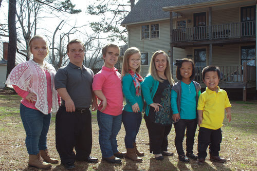 Los protagonistas de ¡Menuda Familia!, Trent y Amber, junto a sus hijos Jonah, Elizabeth, Anna, Ale y China.