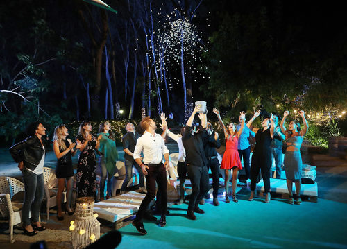 Todos los triunfitos junto con Nina, observan felices cómo Bustamante lanza las palomitas al cielo en un acto de celebración.