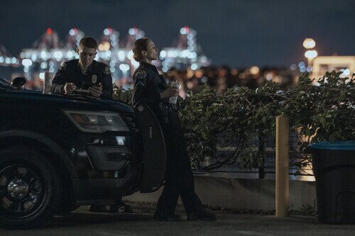 Troian Bellisario y Brandon Larracuente en el 1x01 de 'On Call: Long Beach P.D.'