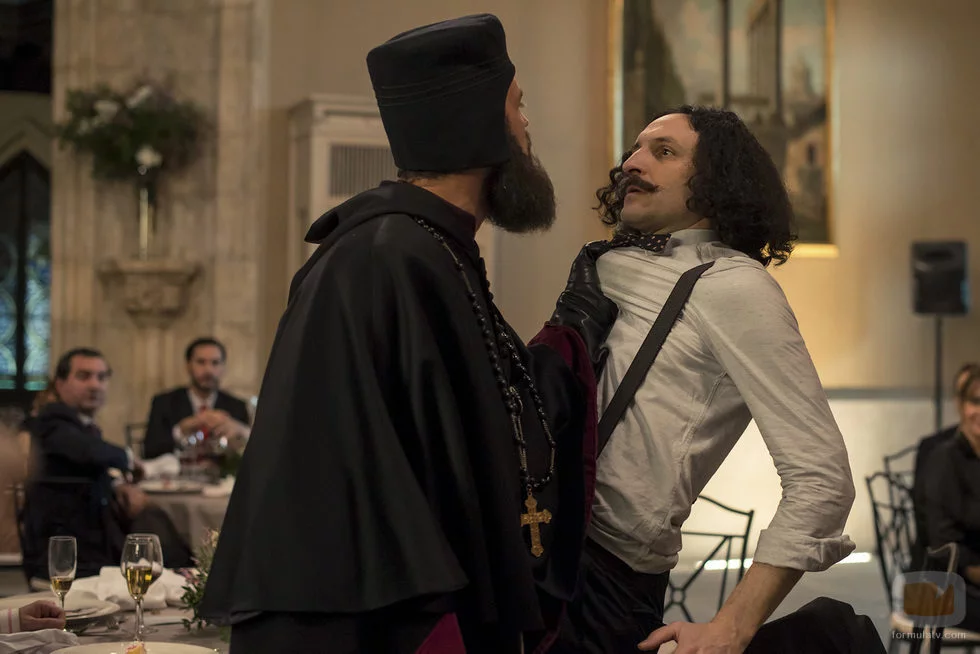 (2x12) Durante la boda entre entre Ortigosa y Natalia, el personaje de Velázquez (Julián Villagrán) será amenazado por un hombre procedente de 1212 en 'El Ministerio del Tiempo'.