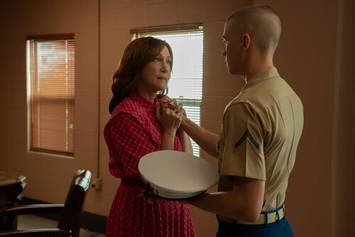 Vera Farmiga y Miles Heizer aparecen en una escena promocional del capítulo 'La prueba de fuego' de la serie 'Reclutas'.