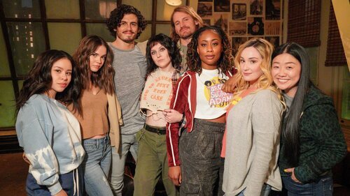 Zuri Adele, Tommy Martinez, Josh Pence, Emma Hunton, Anastasia Leddick, Cierra Ramirez, Sherry Cola y Maia Mitchell aparecen en una escena del capítulo 3x12 de la serie 'Good Trouble'.