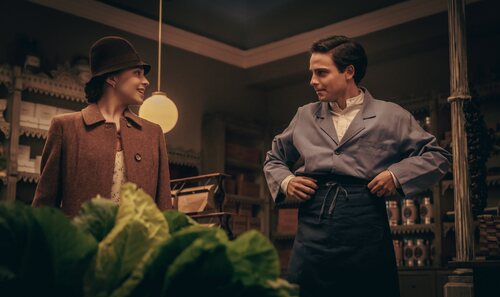 Verónica Sánchez y Joel Sánchez aparecen en una escena promocional del episodio 1x04 de la serie 'La Favorita 1922'.