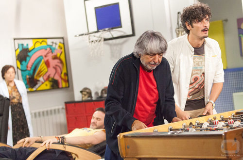 (9x03) Vicente Maroto (Ricardo Arroyo) y Javi Maroto (Antonio Pagudo) juegan al futbolín en el episodio 112 de 'La que se avecina'.