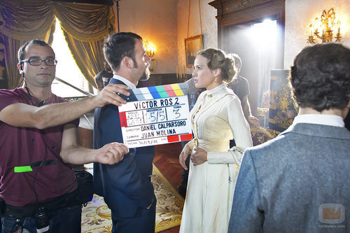 Clara Alvear (Esmeralda Moya) y Víctor Ros (Carles Francino) graban una escena para la segunda temporada de 'Víctor Ros'.