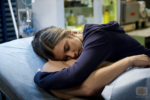 Vilma abraza a Piti que ha enfermado en "El oscuro visitante"