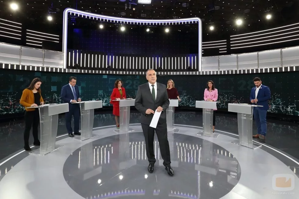 Xabier Fortes junto a los representantes políticos en el debate a seis de RTVE