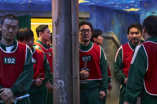 El intérprete Yang Dong-geun (Park Yong-sik) en una foto promocional del episodio 'Noche estrellada' de la serie 'El juego del calamar'.
