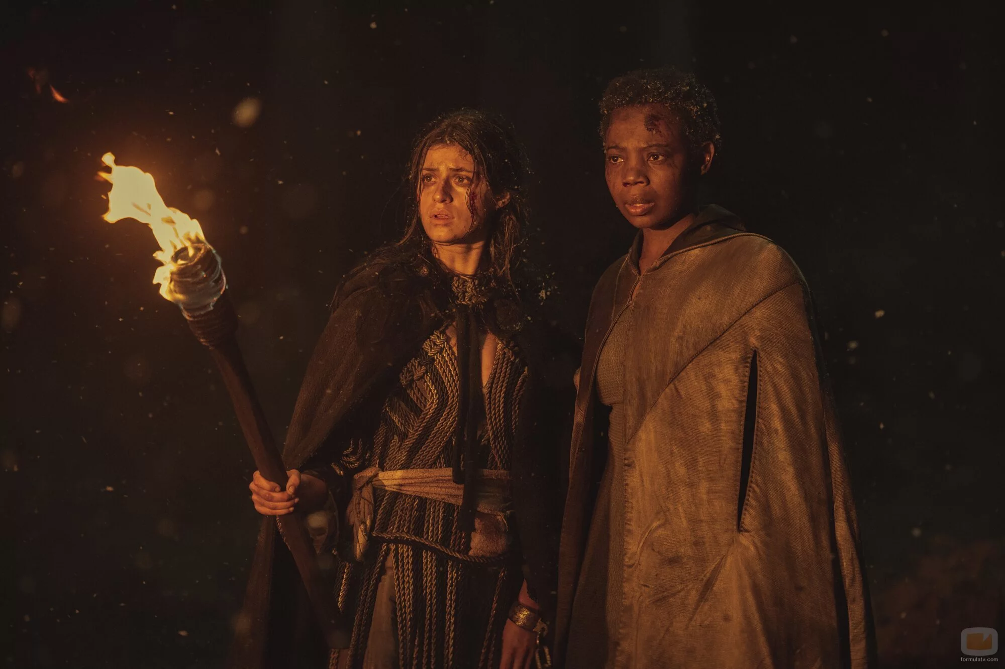 La actriz Anya Chalotra es Yennefer, el personaje que aparece junto a otra mujer, en una escena de 'The Witcher', la ficción de Netflix.