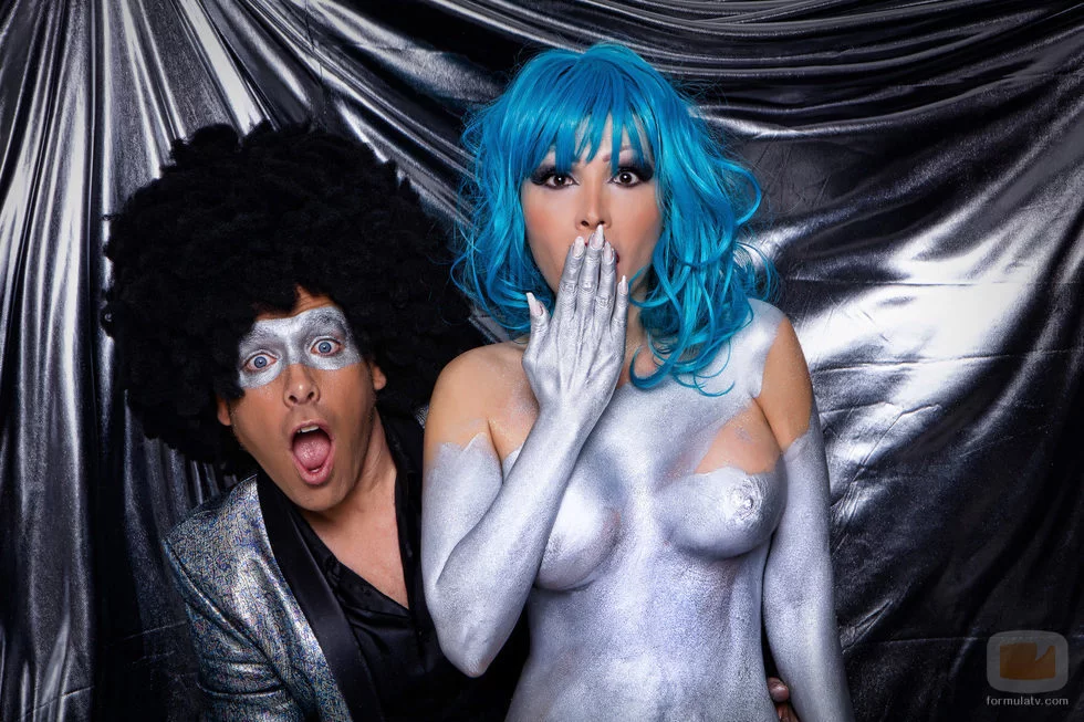 La cantante Yurena posa desnuda junto a Torito, pintada con un color plateado eléctrico acompañada de una peluca de color azul.