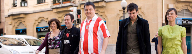 Este viernes se ha grabado en Bilbao el spot promocional de 'Euskolegas' (Pausoka) la nueva serie que Euskal Telebista estrenará el próximo 11 de mayo a través de ETB2. Casi todos los protagonistas de la serie, Alex, (Javier Anton), Patxi, (Andoni Agirregomezkorta), Pruden, (Iker Galarza) Santi, (Ramon Barea), Bego, (Arantza Aranguren) y Esti, (Veronica Moral), figurantes y un amplio despliegue televisivo han participado en la grabación que ha tenido lugar en la Alameda Rekalde de la capital vizcaína y en la que se parodia un conocido anuncio.