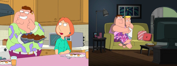 En el episodio titulado "Family Gay", Peter Griffin se presta a probar medicamentos para ganar un dinero extra, y acaba recibiendo el "gen gay", que le vuelve homosexual durante unas horas. El capítulo incluye multitud de críticas a los estereotipos así como a la propia iglesia católica.