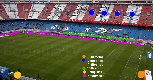 Estos soportes no sólo aumentan la presencia publicitaria de la marca durante la retransmisión del encuentro: (anfiteatros, videomarcadores, banquillos, lonas...) sino que amplian su espectro a otros segmentos (informativos, entrevistas, previos del partido...) y audiencias (lectores de prensa, asistentes al estadio...).