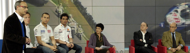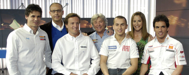 Esta mañana se ha presentado ante los medios de comunicación el despliegue de RTVE para el próximo Mundial de Motociclismo. Presentado por Ernest Riveras y Ainhora Arbizu, al acto han acudido Javier Pons, director de TVE; Carmelo Ezpeleta, consejero delegado de Dorna; Julián Reyes, director de deportes de TVE y Rosalía Lloret, directora de medios interactivos. Junto a ellos, los comentaristas Ángel Nieto y Álex Crivillé– así como tres de los cuatro pilotos españoles de categoría MotoGP: Sete Gibernau, Jorge Lorenzo y Toni Elías.