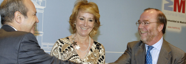 En un acto presidido por Esperanza Aguirre en la Puerta del Sol, sede del Gobierno de la Comunidad de Madrid, el vicepresidente primero y portavoz del Ejecutivo, Ignacio González; la consejera de Medio Ambiente, Vivienda y Ordenación del Territorio, Ana Isabel Mariño; el alcalde-presidente del Ayuntamiento de Pozuelo de Alarcón, Gonzalo Aguado, y el presidente de la Corporación RTVE, Luis Fernández, han suscrito este jueves un protocolo relativo a la ubicación de la nueva sede de RTVE en la finca de Retamares (Pozuelo de Alarcón, Madrid). El acuerdo establece las pautas sobre la actuación de cada una de las Administraciones y fija el marco general y la metodología para el desarrollo del proceso de traslado de la sede de la Corporación, mediante la suscripción de los correspondientes convenios urbanísticos o cualquier otra naturaleza.