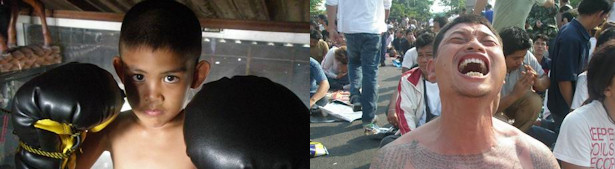 Organizaciones de derechos humanos han conseguido que el gobierno de Tailandia eleve a los 15 años la edad mínima a la que un niño puede empezar a pelear, pero este reportaje de Cuatro demuestra que en el interior del país, en las fiestas de los pueblos, no se es tan escrupuloso con la legalidad.
