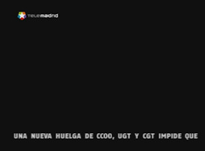 "Una nueva huelga de CC.OO., UGT y CGT impide que Telemadrid pueda ofrecerles su información y programación habitual. La emisión se reanudará a las 10:00 horas del lunes 20". Así reza el rótulo que la cadena autonómica madrileña sobreimpresiona sobre un fondo negro con el logotipo de la cadena. Por segunda vez esta semana, Telemadrid se queda en negro. La anterior jornada de huelga, el pasado martes, dejó a la cadena con su mínimo histórico de audiencia, un 1,2% de share.