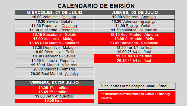 El tradicional Torneo Nacional de Fútbol 7 se celebrará desde mañana, miércoles 1 de julio hasta el viernes 3 en las instalaciones deportivas municipales de La Torre, en A Coruña. Como viene siendo tradición desde el inicio de su andadura, el torneo, que organiza la Fundación El Larguero en colaboración con Radio Coruña Cadena SER, será retransmitido en directo por Canal+ Fútbol (diales 8 y 50 de Digital+) y Cuatro.