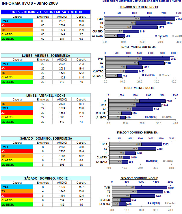 En las noches laborables, Mamen Mendizábal sube 1 punto, Iñaki Gabilondo y Silvia Intxaurrondo ganan 9 décimas, mientras que Matías Prats y Lorenzo Milá se mantienen, Piqueras gana 3 décimas.