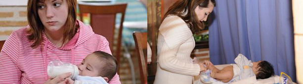 Tania 15 años. Valladolid. No cree tener ningún problema con su maternidad, pero prefiere dejar a su hijo al cuidado de su madre los fines de semana y aprovecha para salir con los amigos. Se siente insegura en el manejo del niño y no se atreve ni a bañarlo.
