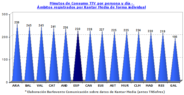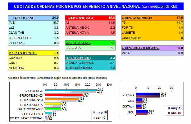 En el mes de mayo asciende el consumo televisivo, tres minutos con respecto al mes de abril y nueve minutos más que en el mes de mayo de 2009.