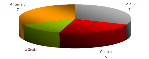- Telecinco se convierte en este periodo en la cadena que acumula un mayor número de quejas presentadas (40), seguida por laSexta (32), Antena 3 (27), Cuatro (22) y La 1 (7).