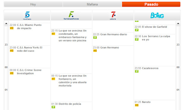 Telecinco anunció la semana pasada el estreno de la TV movie 'Felipe y Letizia' para este próximo lunes, 25 de octubre, sin embargo, más tarde cambió su previsión y volvió a programar 'CSI'. Hoy sábado Telecinco anuncia otro cambio y coloca de nuevo 'Felipe y Letizia' para este lunes (22:00), aunque en la parrilla de su web mantiene todavía la emisión de una triple entrega de 'CSI', como puede apreciarse en la captura inferior.