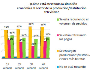 Uno de los efectos más claros de la crisis económica en el sector televisivo es que se están encargando producciones más baratas: un 88% de los panelistas (la misma cifra que en la ola de primavera, la más alta obtenida hasta entonces) está de acuerdo con esta opinión.