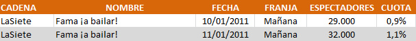 'Fama ¡a bailar!' adelantó su horario una hora en su repetición en la mañana de LaSiete tras el pobre 0,9% del lunes. Aunque sólo mejoró dos décimas, la jugada les salió bien y aumentaron su dato respecto a la reubicación en esta franja.