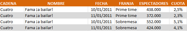 'Fama ¡a bailar!' fue otra de las ofertas que vieron disminuido su dato con respecto al lunes. Tanto en su edición vespertina, donde bajó un punto y 128.000 espectadores; como en la de prime time, donde cedió dos décimas y 66.000 seguidores; la tendencia a la baja se hace patente, regresando a los datos de las últimas semanas de 'Fama Revolution'.