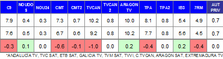 9. Las Autonómicas Privadas (0,7%) repiten resultado