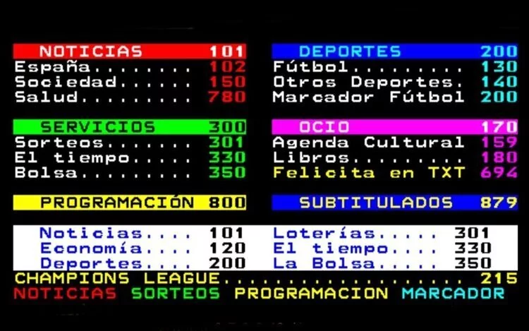 A España llegó en 1988 y fue toda una revolución en aquel entonces, cuando todavía no había internet y los ciudadanos disponían desde sus televisores de más de 800 páginas con todo tipo de información actualizada por la que "navegabas" con su mando a distancia. Con distintos códigos, se escribe el número de tres cifras para determinar a qué página quieres ir de todas la que se ofrecen y acto seguido tienes la información en tu televisor.