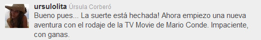 La TV Movie sobre la vida de Mario Conde continúa adelante. Su elenco contará con la participación de una importante cara televisiva, ya que Úrsula Corberó ha publicado en su Twitter su incorporacón a este nuevo biopic.