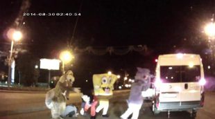 Bob Esponja, Mickey Mouse y Scrat ('Ice Age') le dan una paliza a un conductor ruso