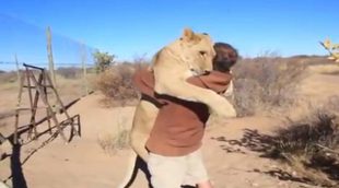 Un vídeo del amor que pueden sentir los animales por los humanos, aunque sean animales salvajes y peligrosos. Esta leona llevaba seis meses sin ver a Valentin Grüner, su cuidador, y se lanza a sus brazos en cuanto le ve.