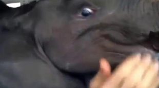 Bebé elefante en avioneta tras ser evacuada de una matanza