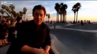 Un monopatín impacta brutalmente sobre la cabeza de un reportero