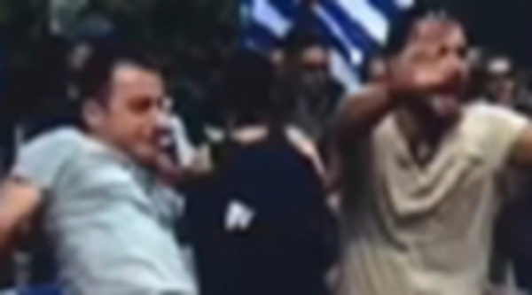 En las imágenes se observan numerosos jóvenes cargando contra la policía. Sin embargo, varios detalles hacen sospechar sobre su localización. Los escudos de la autoridad muestran varias letras del alfabeto griego y los jóvenes llevan encima banderas del país.