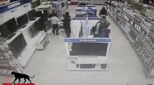 Alucinante vídeo de una mujer robando un televisor y escondiéndolo bajo su vestido