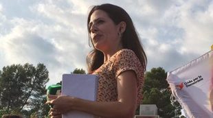 Tras la cara de preocupación de la periodista, los manifestantes le cantaron una canción catalana.