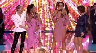 La artista dominicana ha sufrido un percance en mitad de la actuación con Cristina Porta, pero ha decidido continuar el show hasta el final.