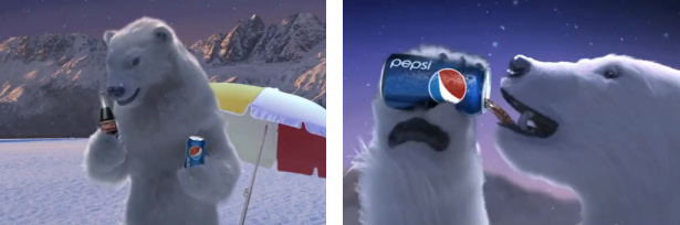 ¿Se imaginan a Santa Claus o al conocido oso polar de Coca-Cola decantándose por el refresco de la competencia? Esa es la imagen que Pepsi está mostrando en sus nuevos anuncios. Los personajes más reconocibles de Coca-Cola dudan entre seguir bebiendo "lo de siempre" o cambiarse a Pepsi. Evidentemente eligen Pepsi, un refresco que la propia marca relaciona con la fiesta y la alegría.
