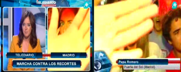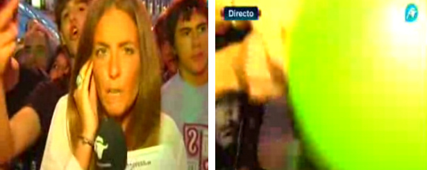 Algunos de los manifestantes fueron rodeando a la periodista de Intereconomía, y le impidieron realizar su trabajo con gritos, insultos y progresivo riesgo para su integridad física, hasta el punto de que resolvió junto al cámara y la productora abandonar el lugar y no intervenir por segunda vez en el 'Telediario' que dirige Luis Losada.