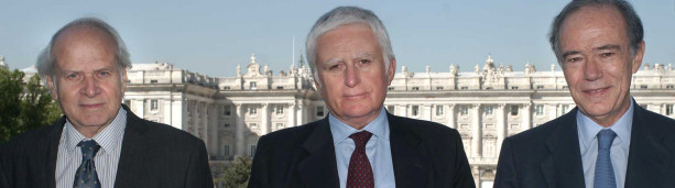 Paolo Vasile, consejero delegado de televisión de Mediaset España; el presidente de la Fundación Teatro Real, Gregorio Marañón; y el director general del Teatro Real, Miguel Muñiz, han firmado en la mañana de este jueves un convenio de colaboración que convierte a la entidad privada en nuevo patrocinador de la institución.