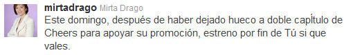 Ahora, intentará apoyar a 'Cheers', cuyos datos han descendido desde su estreno. Según ha confirmado la cadena a este portal, la ficción de Alberto San Juan y Antonio Resines verá reducida su emisión de dos a un episodio y así el formato de talentos de Gestmusic podrá llegar un poco antes. De esta manera, 'Cheers' se emitirá a las 22:00 y 'Tú sí que vales' llegará a las 22:30 horas.