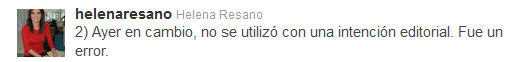 Como ya avanzamos en el día de ayer, este particular sello de 'laSexta noticias' no es nuevo. Este miércoles, en respuesta a la multitud de comentarios que esta información ha generado en las distintas redes sociales, la propia Helena Resano ha querido, a través de Twitter, dar su versión de lo sucedido.