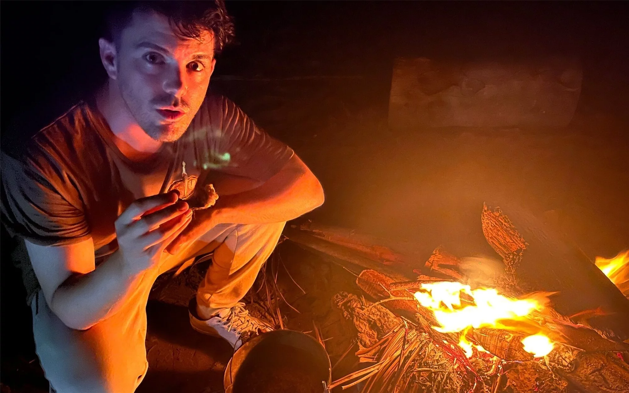 Se ha quedado una noche espectacular. Se ve la vía láctea de una forma muy clara y nos quedamos contemplándola durante varios minutos. No hay nubes, no hay contaminación, y se ven las estrellas como nunca. Tras este rato de tranquilidad, la cena ya está hecha y nos lo comemos directamente de la olla usando un trozo de la cáscara de coco como cuchara.