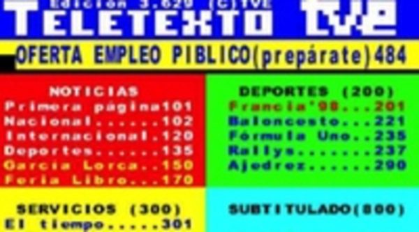 Tal día como hoy, hace 24 años, comenzó a emitirse en TVE de forma ininterrumpida el Teletexto. A pesar de que fue durante el Mundial de Fútbol de 1982 cuando comenzaron las emisiones en prueba, no fue hasta el 16 de mayo de 1988 cuando se estrenó oficialmente.