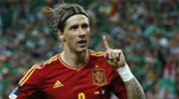 Fernando Torres recibe la felicitación de sus compañeros de equipo tras su primer gol ante Irlanda. <span>Telecinco</span>